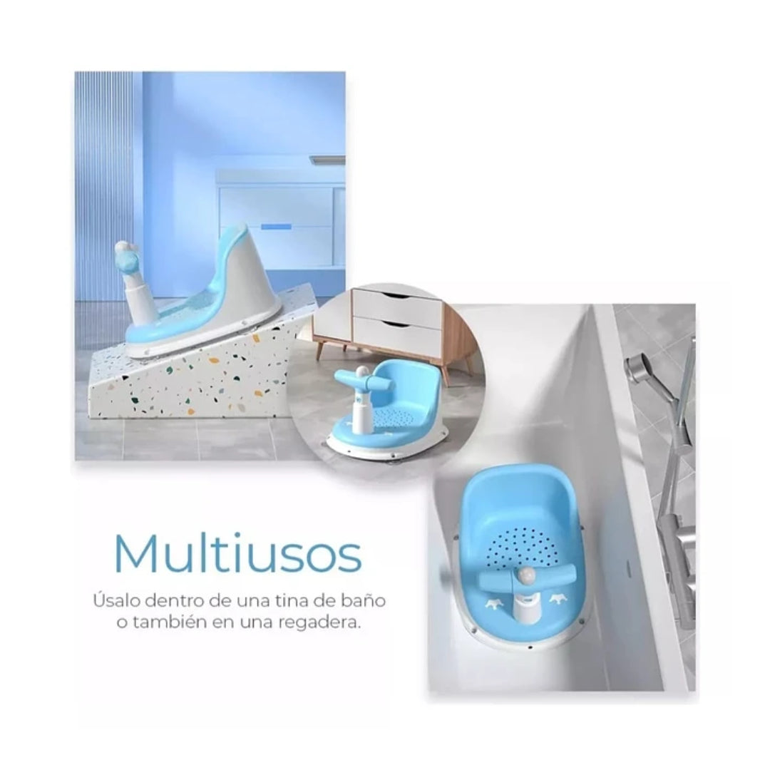 Fabricada en ABS de alta calidad, no tiene esquinas afiladas y ofrece gran durabilidad, siendo adecuada para bebés de 6 a 36 meses. Su diseño envolvente protege al bebé desde todos los ángulos, brindándole una sensación de seguridad mientras disfruta del baño. Además, cuenta con un respaldo alto y un asiento con silicona antideslizante y suave, que ofrece mayor comodidad y apoyo.