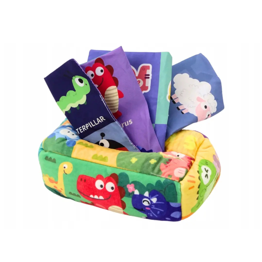 La caja incluye pañuelos de diferentes texturas y colores vibrantes que capturan la atención de los pequeños y les permiten disfrutar del juego interactivo, como sacar y descubrir. Un producto perfecto para el desarrollo de las habilidades motoras finas y la curiosidad natural de tu bebé.