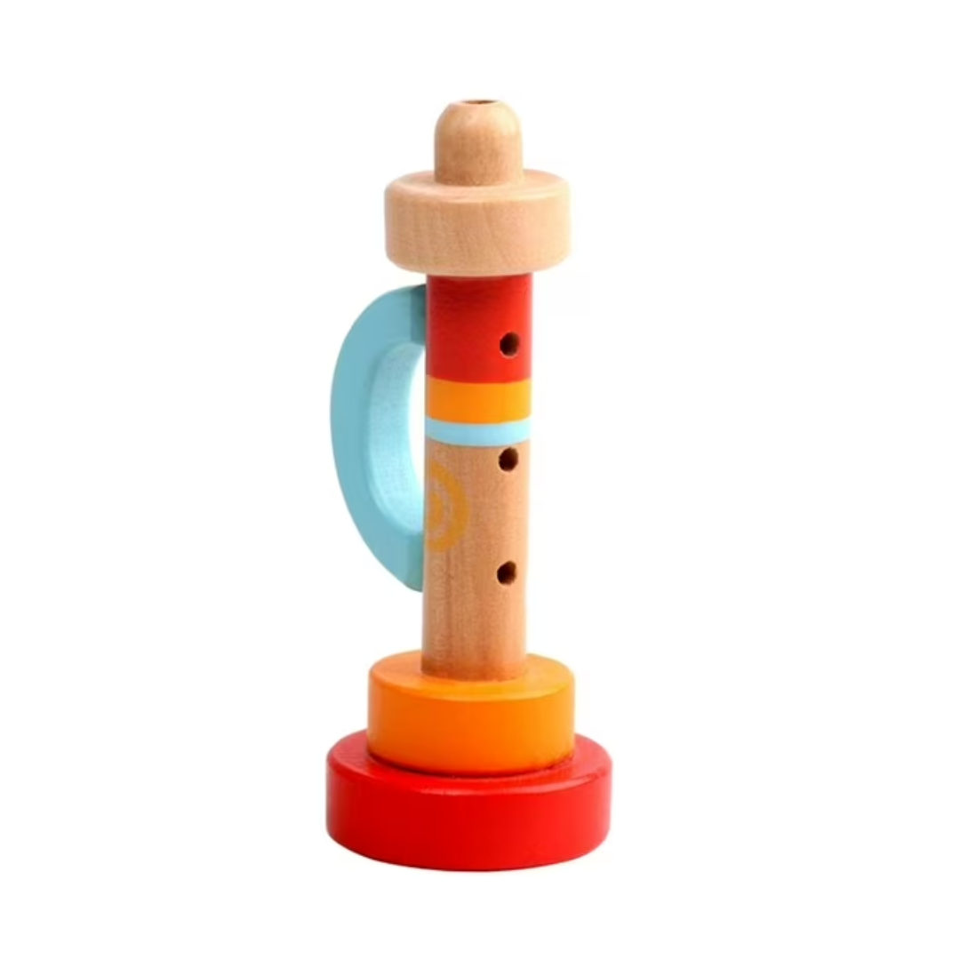 Un instrumento lúdico que invita a explorar sonidos y soplo controlado, fomentando la respiración y la curiosidad musical.