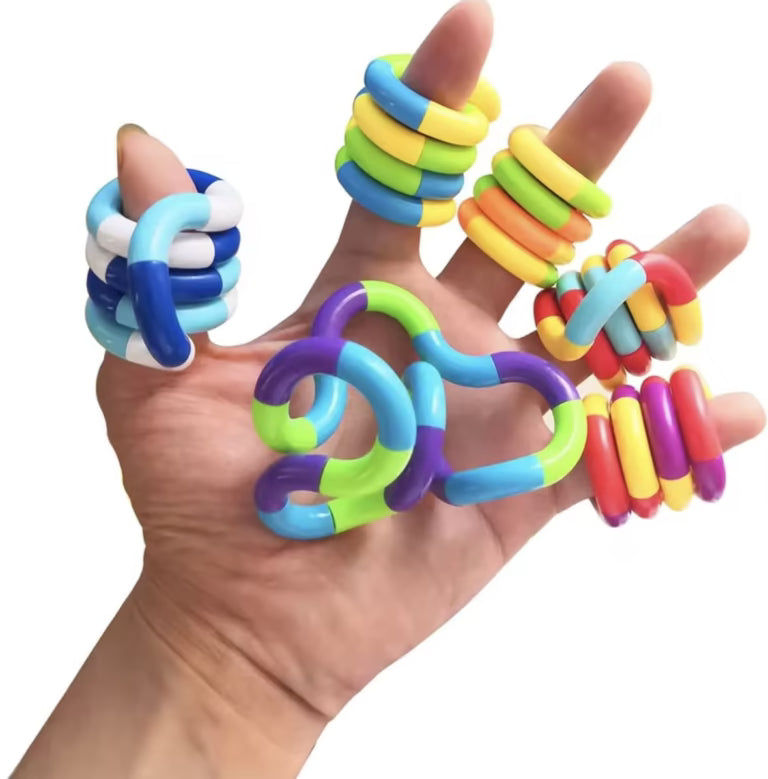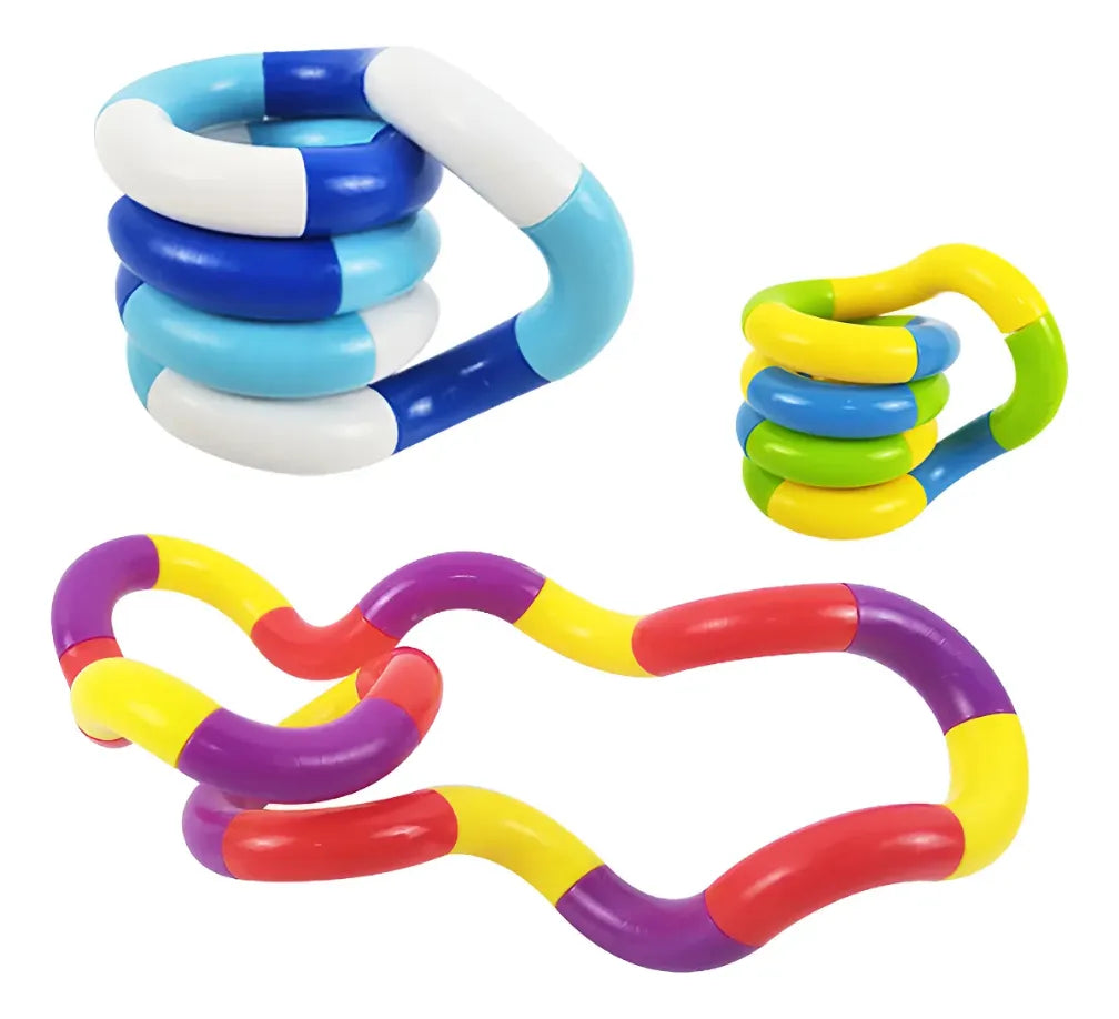 Esta culebra para enroscar es un recurso sensorial compuesto por piezas de colores brillantes que se conectan entre sí, permitiendo doblarlas, girarlas y darles distintas formas. Además, al separar y conectar sus piezas produce un agradable sonido de “clic”. Su diseño portátil y flexible lo convierte en una excelente herramienta para mantener las manos ocupadas, liberar energía y fomentar la concentración de manera divertida.