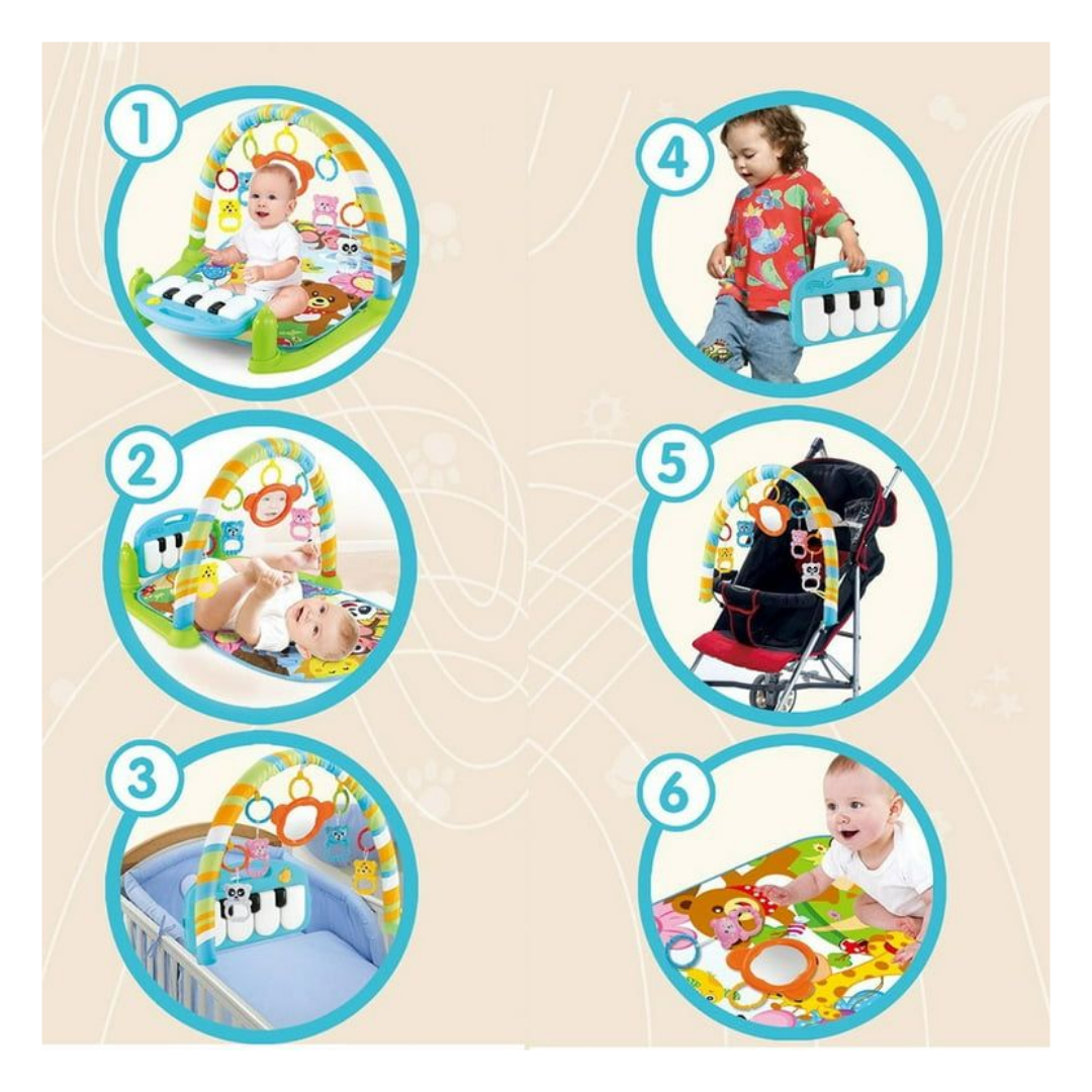 El Gimnasio Piano Musical Interactivo es mucho más que una alfombra de juego: es un espacio lleno de estímulos sensoriales y diversión, diseñado para ayudar a tu pequeño a desarrollar sus habilidades motoras, sensoriales y cognitivas mientras se entretiene durante horas.