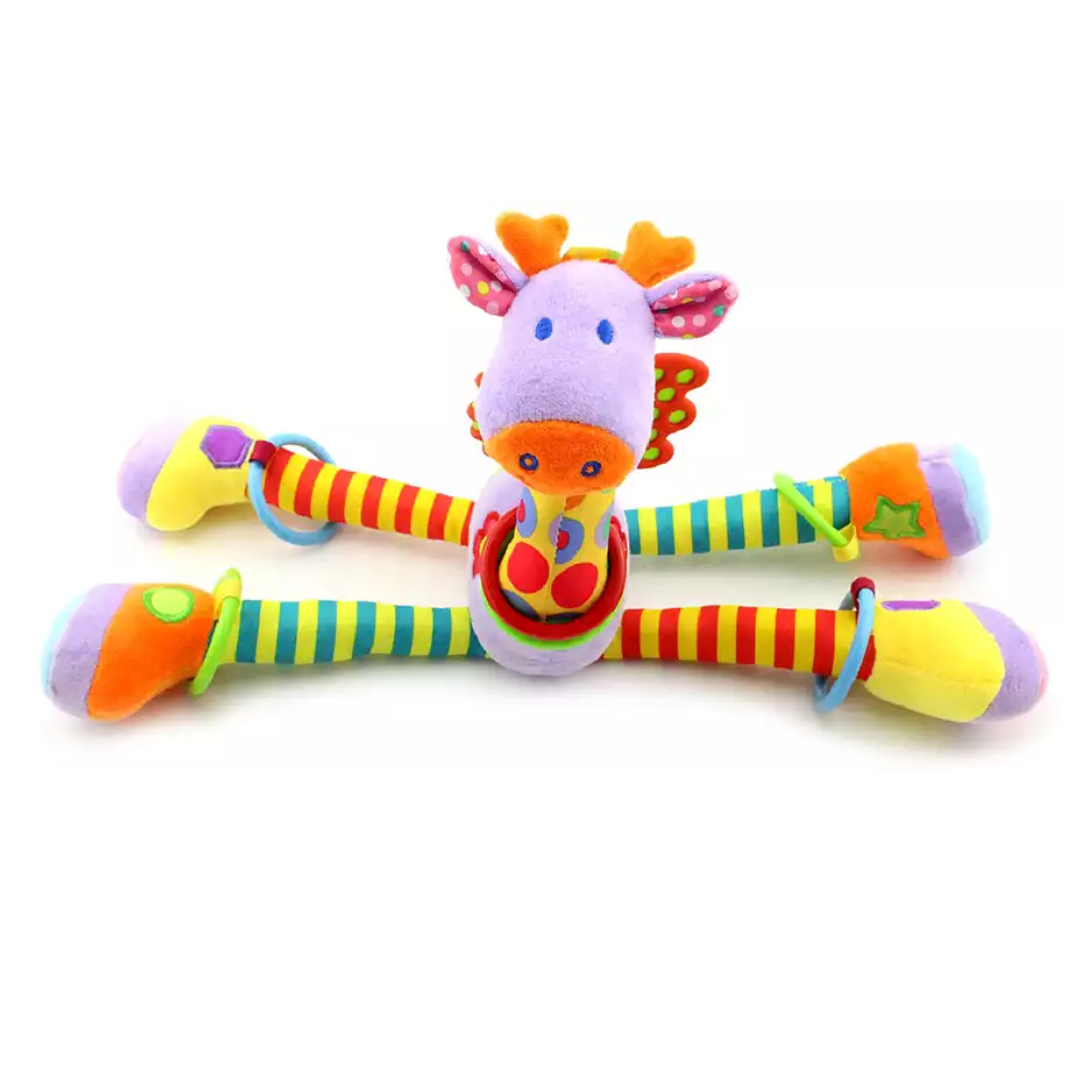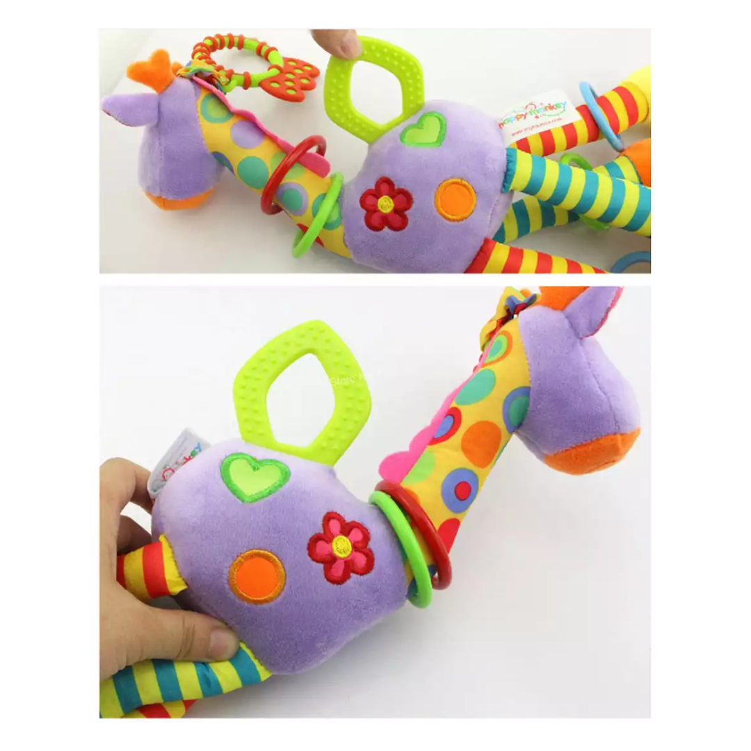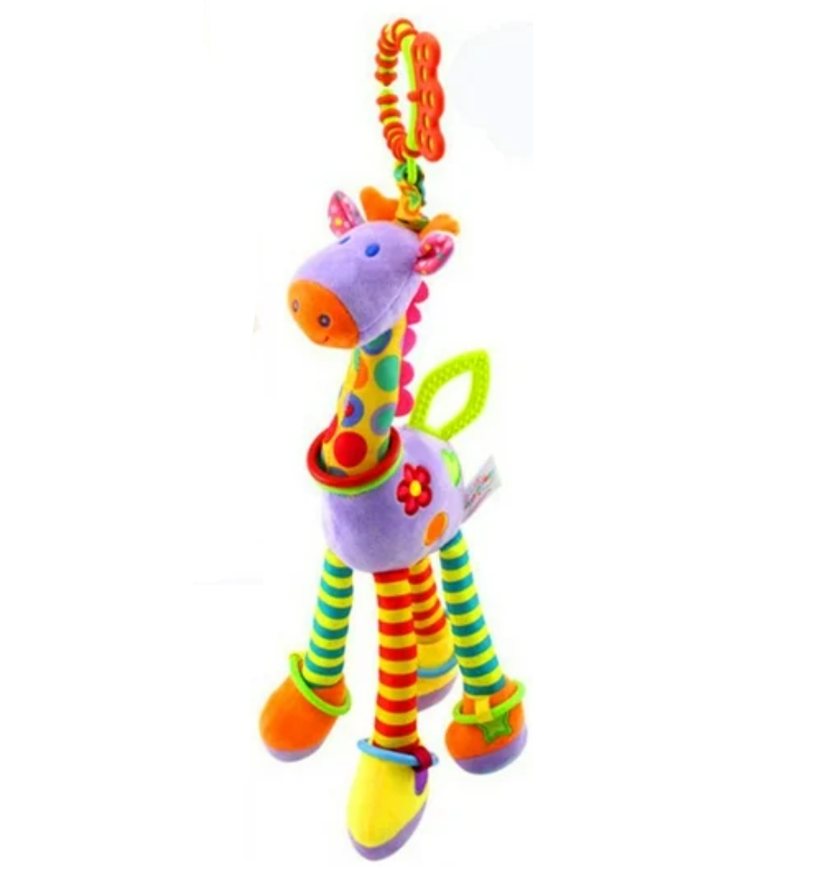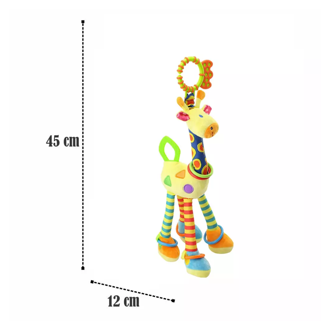 Con una encantadora jirafa de peluche, este sonajero no solo llama la atención por su ternura, sino también por sus colores brillantes, que ayudan a mejorar la capacidad visual del bebé. Las hebillas de colores son perfectas para que las manitos pequeñas practiquen el agarre, mientras que el mordedor ofrece alivio durante la etapa de dentición 🌈🦒💛.