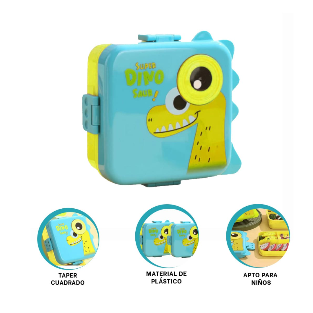 Con un tamaño de 23 x 19 x 9 cm y una capacidad total de 1590 + 70 ml, ofrece espacio más que suficiente para organizar comidas completas. Cada capa cuenta con compartimentos separados, perfectos para llevar variedad de alimentos de manera ordenada y nutritiva. Su divertido diseño de dinosaurio la convierte en la opción ideal para niños que aman los colores y las figuras llamativas.