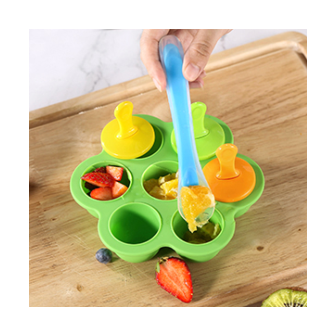 Con siete cavidades, podrás crear varios helados a la vez, haciendo más fácil sorprender a tu bebé con snacks refrescantes, nutritivos y libres de conservantes ✨. Fabricados en silicona ecológica y de alta calidad, resisten temperaturas extremas y están pensados para acompañarte durante mucho tiempo.