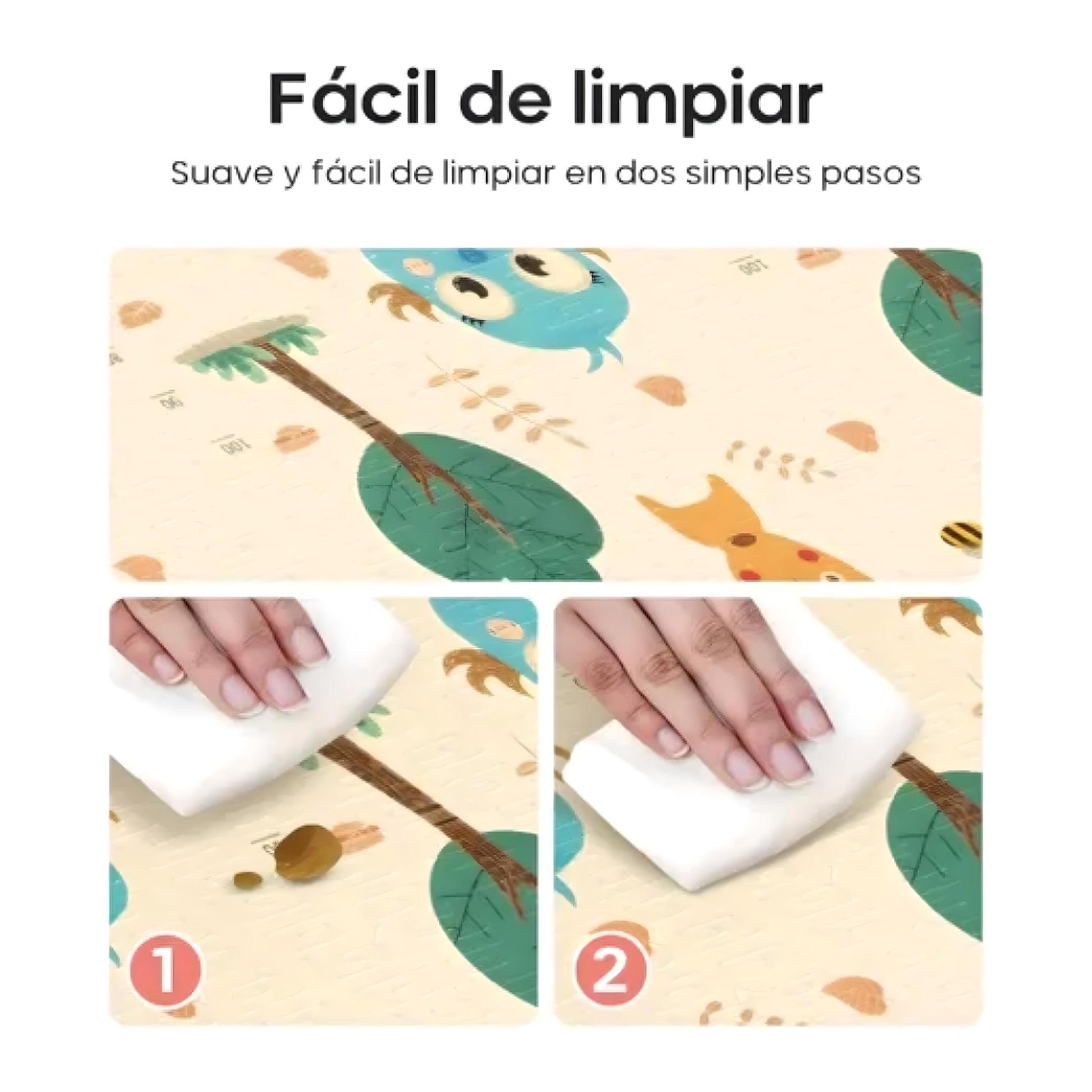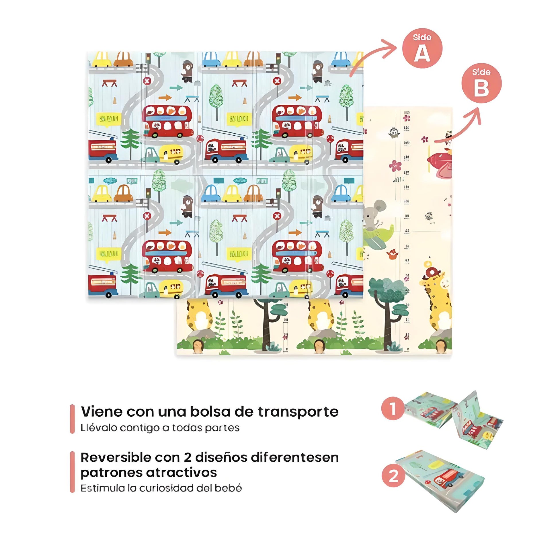 Fabricada con XPE de alta densidad, un material suave, resistente y totalmente seguro, esta alfombra ofrece una amortiguación ideal para que tu bebé se mueva con libertad y sin riesgos 🤗✨. Además, es plegable e incluye una práctica bolsa de transporte, perfecta para llevarla donde quieras: la habitación, la sala de juegos, el living o incluso en las salidas al aire libre. ¡Siempre lista para crear un rincón de juego especial donde tú decidas! 🌟