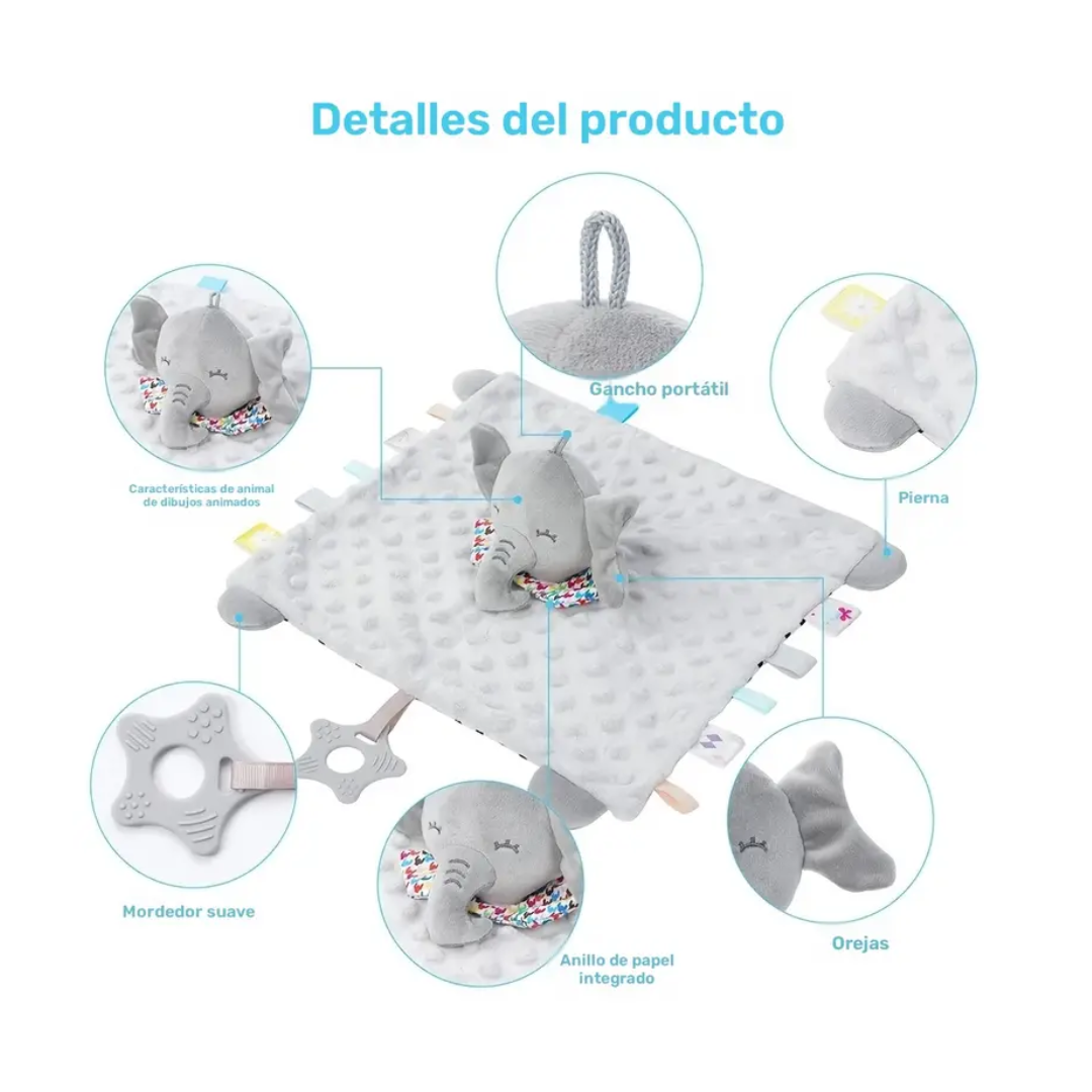 El compañero perfecto para los primeros meses de tu bebé. Este tierno tuto de apego combina peluche suave, manta calmante y mordedor, ofreciendo confort, entretenimiento y alivio en una sola pieza. Diseñado especialmente para recién nacidos y niños pequeños, ayuda a proporcionar seguridad emocional mientras estimula sus sentidos.